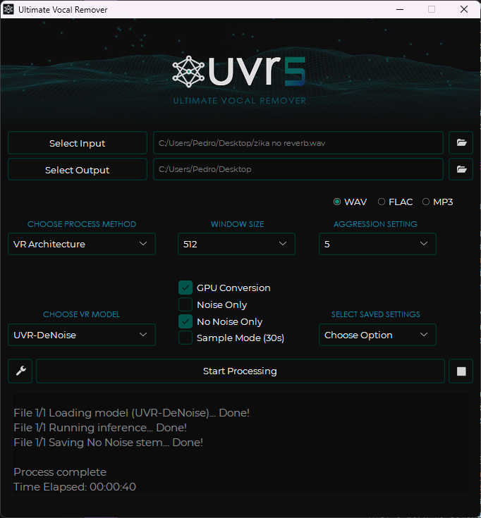 A saída do modelo, foi utilizado uma transposição de uma quarta abaixo do tom original, devido a voz do modelo ter um timbre menor que a minha
